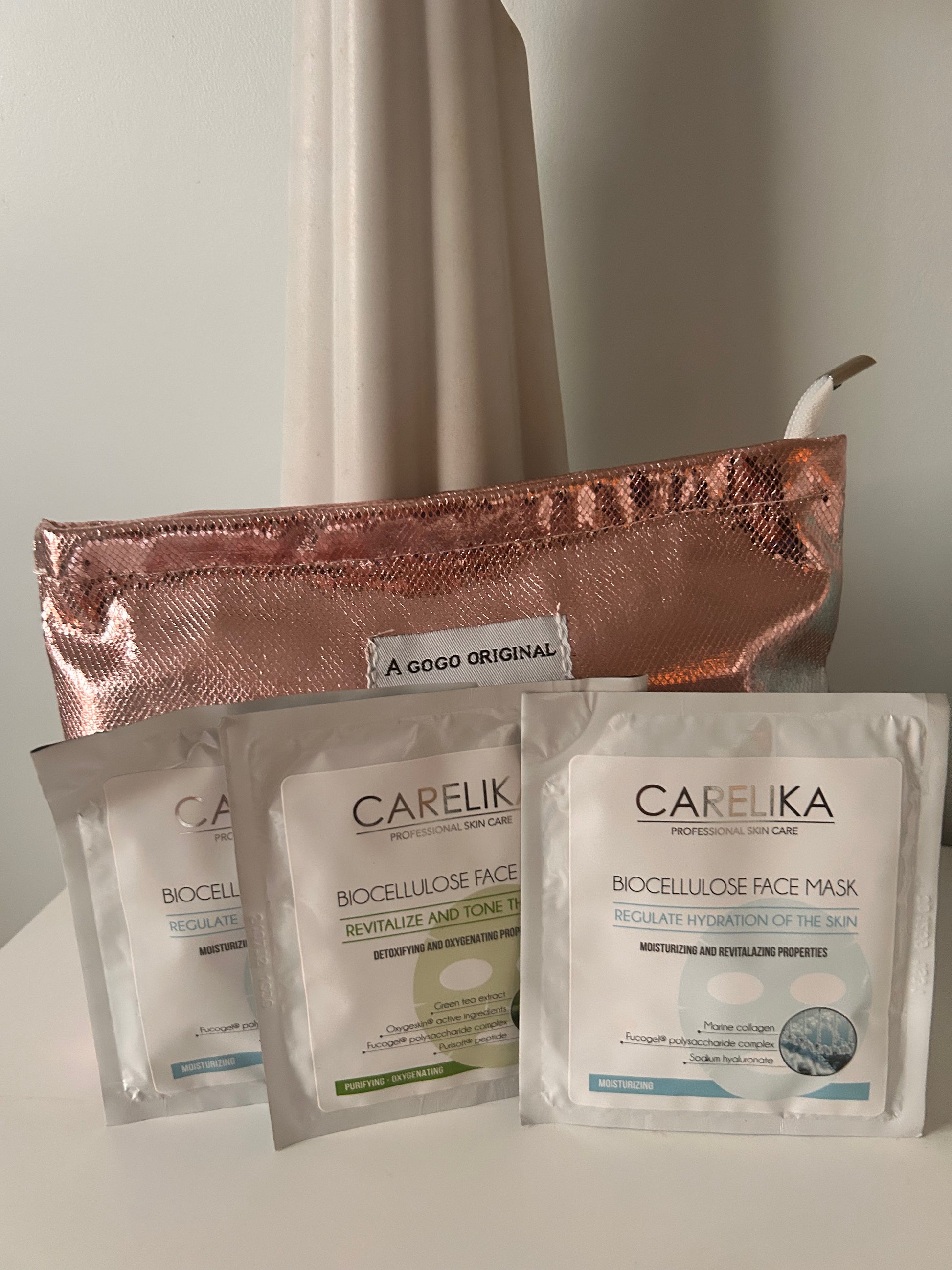 Beauty tasje met 3 Biocellulose face maskers Hyaluronic en Detox